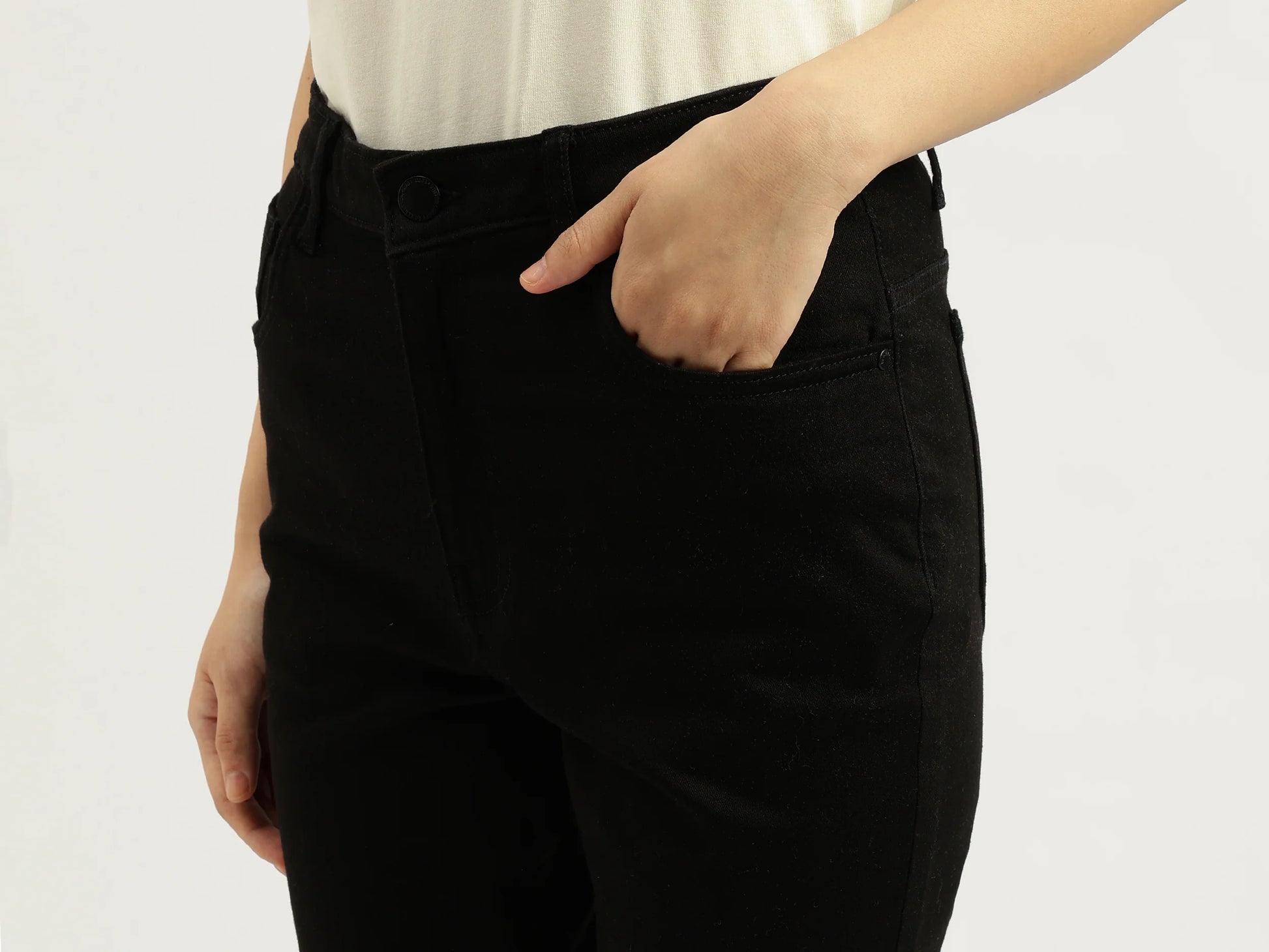 In summary, these casual solid boot-leg fit jeans are an ideal combination of comfort, style, and versatility. With their flattering boot-leg silhouette, durable fabric, comfortable waist fit, and easy-to-style design, they are perfect for professional work settings, casual weekends, or any occasion in between. Designed to be a reliable and stylish wardrobe staple, these jeans provide a timeless, polished, and effortless look for modern women.