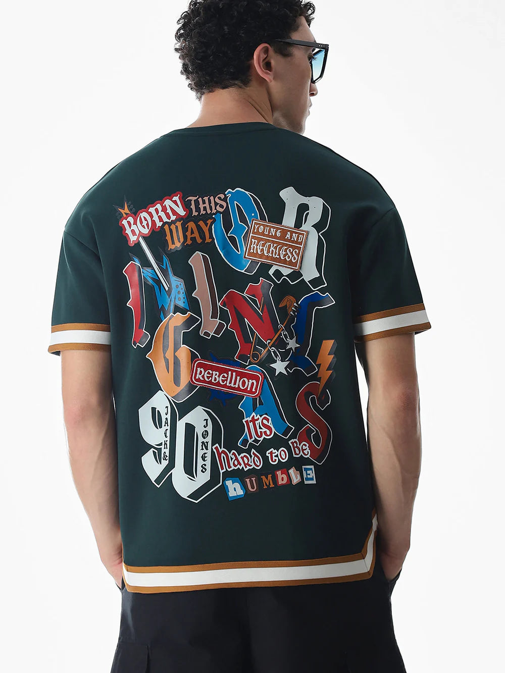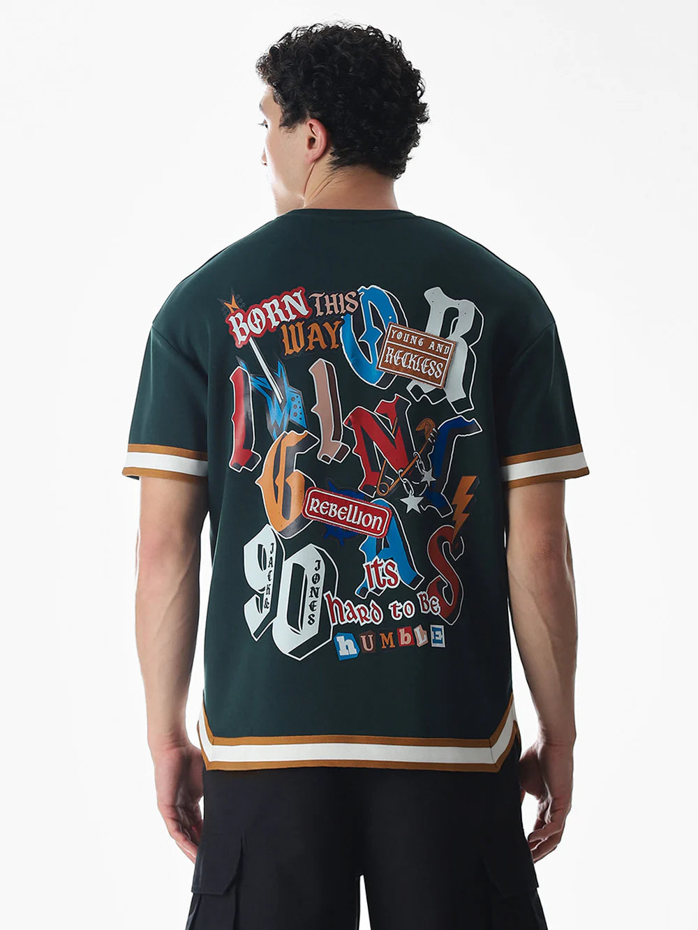 Comfortable Green Varsity Drop Shoulder T-Shirt Men’s Oversized Relaxed Fit Fashion