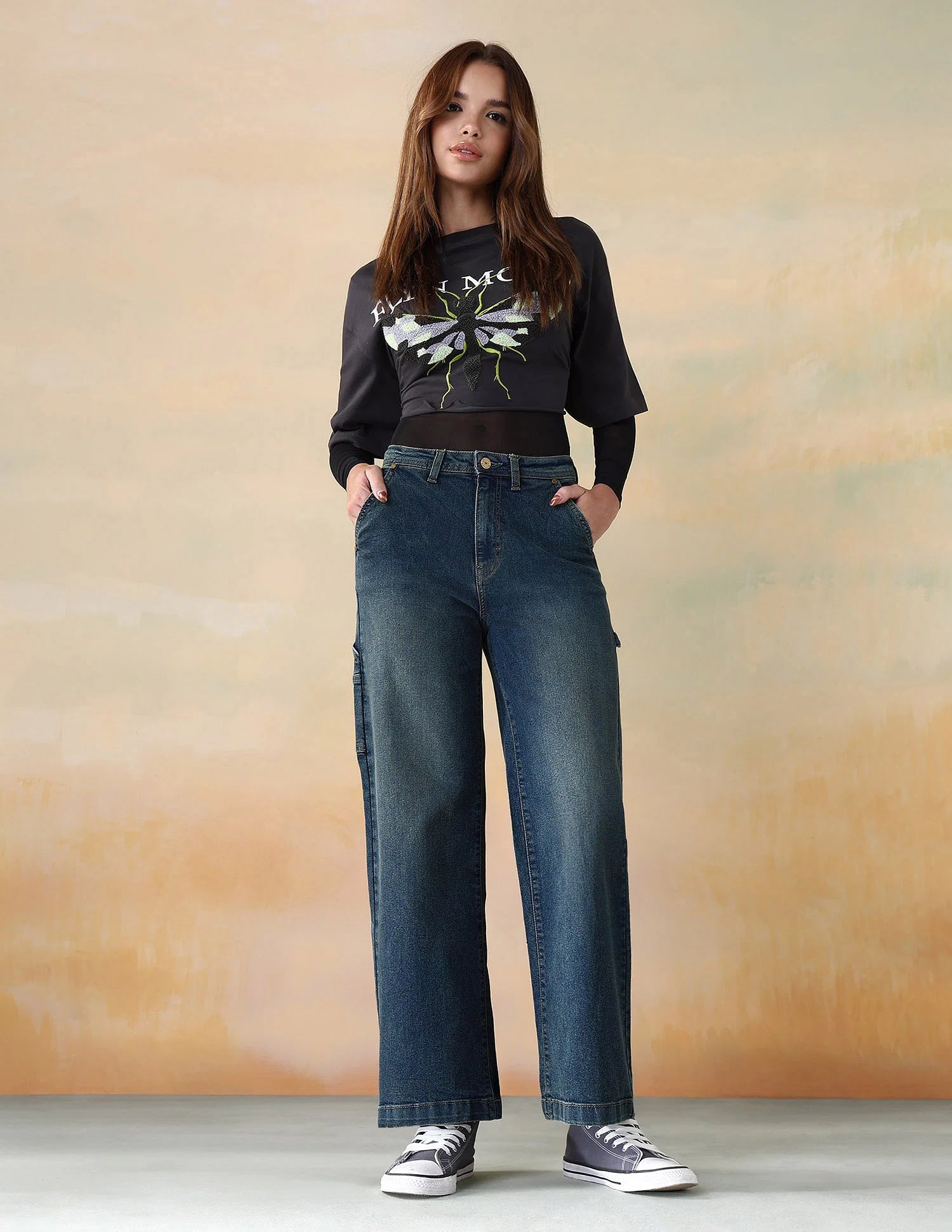 These designer high-rise wide-leg jeans are highly versatile in styling. For a casual day look, pair them with sneakers and a relaxed tee or oversized shirt. For a more polished, urban-inspired outfit, combine them with a fitted blouse, statement belt, and heeled shoes. Layering with tailored jackets, blazers, or coats adds dimension and sophistication, while accessories such as bags, scarves, or jewelry can elevate the overall ensemble.
