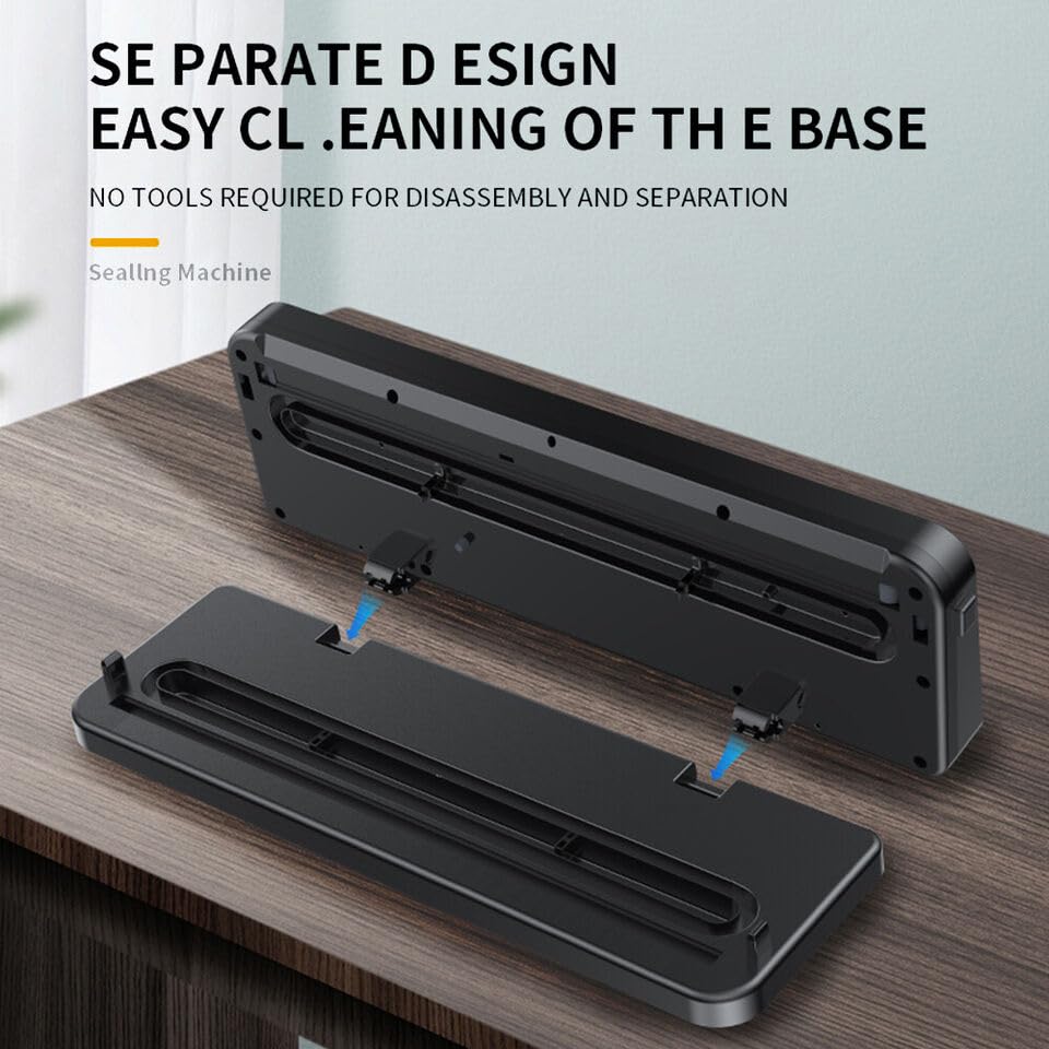 Cleaning and maintenance are straightforward. The machine’s surface can be wiped clean, and the sealing area is designed for easy access, ensuring hygiene and preventing contamination. Its compact design allows it to fit neatly on countertops or in kitchen cabinets when not in use, combining functionality with space-saving convenience.