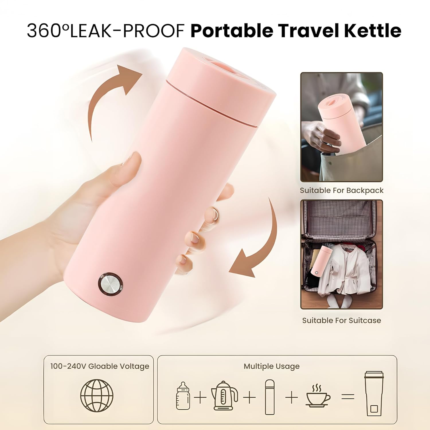 Versatility is another highlight. Ideal for preparing hot beverages, instant soups, or even baby formula, this portable kettle adapts to a variety of needs. Its fast heating and compact design allow it to meet your everyday requirements wherever you are, from hotel rooms and offices to camping sites and student dormitories.